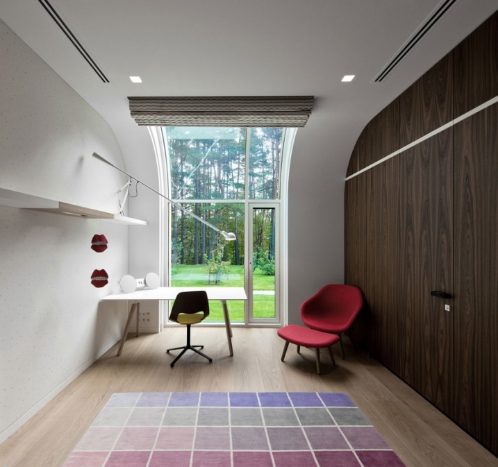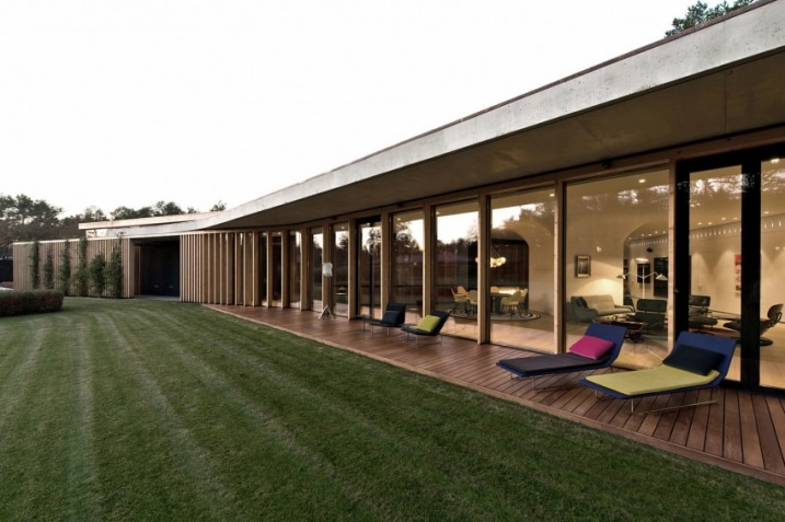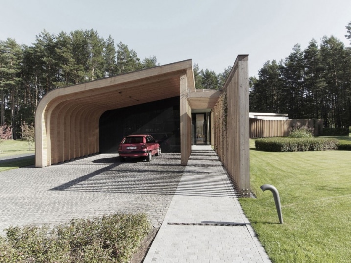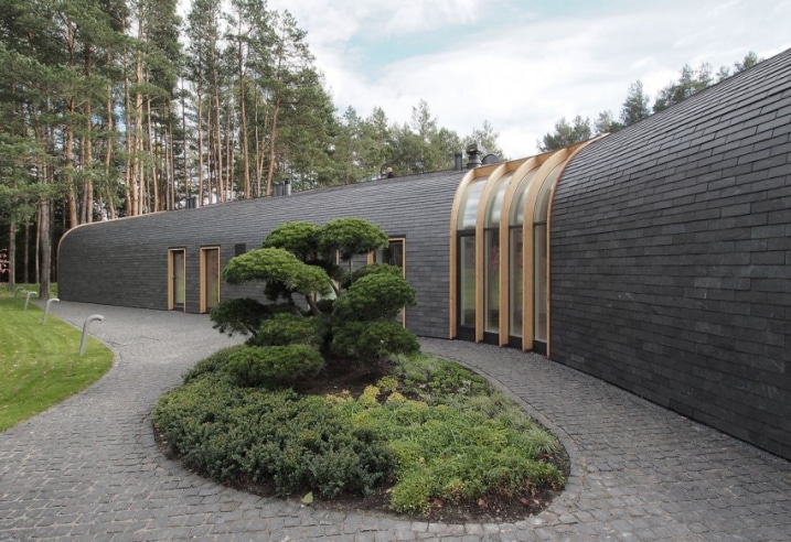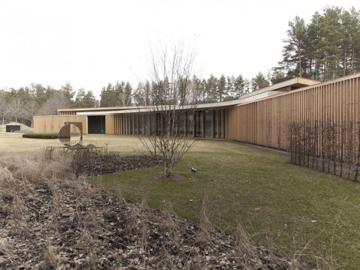 La maison de 520 mètres carrés a été conçu par Audrius Ambrasas Architects en 2014.L’idée principale des architectes était que la maison se fonde dans le paysage.