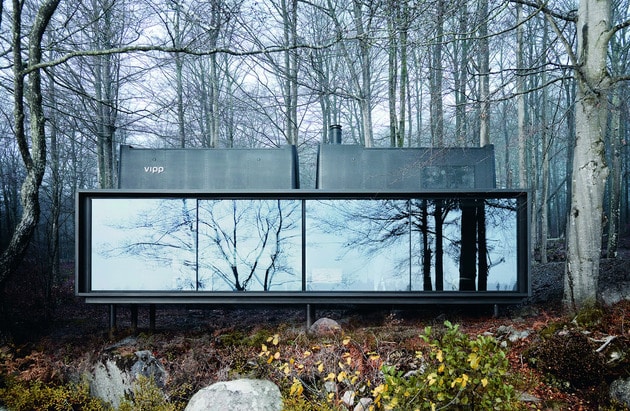 Vipp n’est pas un cabinet d’architecture, c’est une société qui fournit des produits pour la maison, elle se sert du logement comme une étape ambitieuse dans le monde du préfabriqué et utilise celle-ci comme un moyen de mettre en valeur ces produits. Située à Copenhague, Vipp a conçu et créé cette maison comme un abri préfabriqué, entièrement meublé et accessoirisé livré avec toutes les choses nécessaires de la vie courante jusque dans la literie et les ustensiles de cuisine.