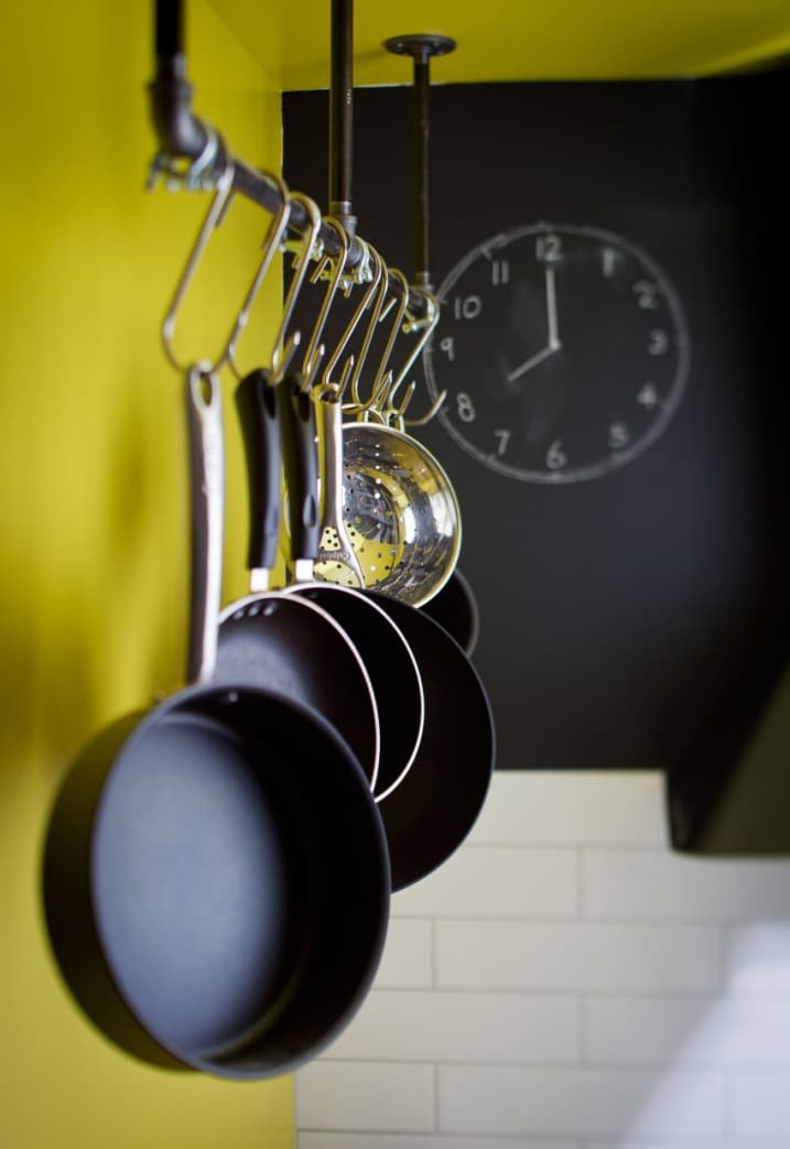 Cuisine avec des murs jaunes et noirs