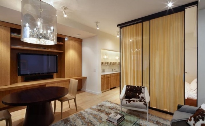 Rideaux, portes, meubles ou encore portes coulissantes sont bénéfiques dans un petit espace en raison de leur positionnement flexible.