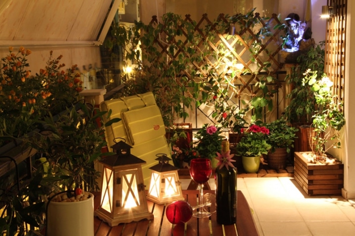 Balcon avec luminaires et photophores