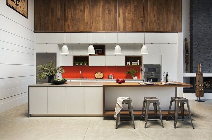 Une magnifique cuisine contemporaine, avec une ambiance joyeuse et un style rappelant les années 50, un espace salle à manger ingénieux constituent le niveau inférieur.