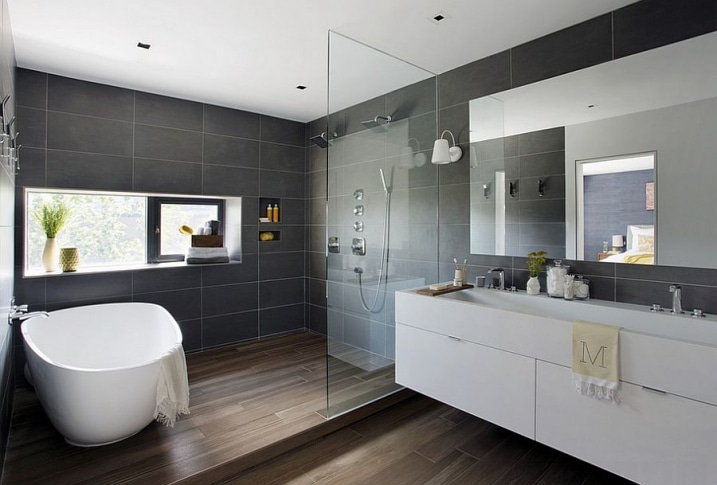 La chambre principale et la salle de bains semblent aussi puiser dans la magie du gris pour apporter un sentiment de sophistication sereine.