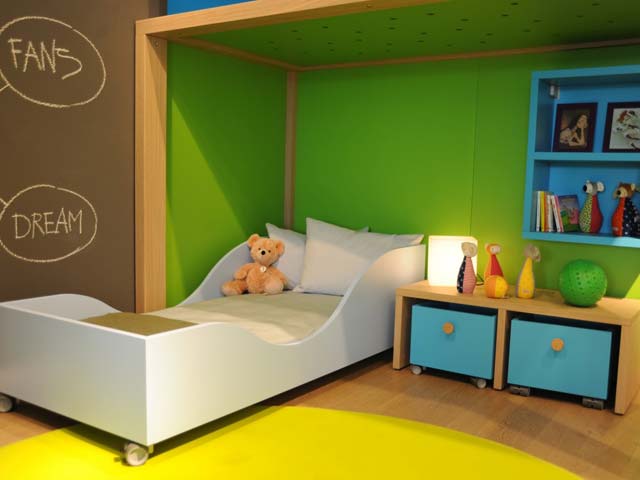 C’est très coloré, certes, mais pas forcément surchargé finalement! Et c’est bien ça le secret… On peut mettre de la couleur vive pour décorer une chambre d’enfant mais il faut juste savoir la doser et réussir à l’adoucir grâce à d’autres tons plus légers…