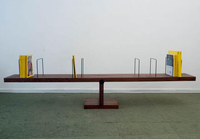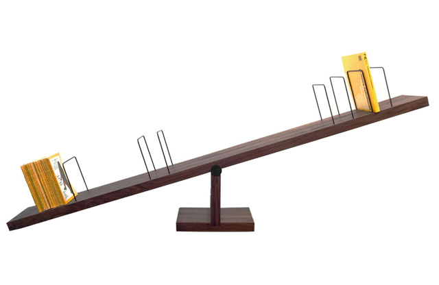 Cette étagère design baptisée See-Saw a été imaginée par les designers Boaz Cohen et Sayaka Yamamoto. Son principe est simple puisque, comme vous pouvez le constater sur les photos suivantes, elle ressemble étrangement (et complètement) à une balançoire. A vous d’équilibrer le poids de vos livres de part et d’autre de l’axe centrale pour que l’étagère See-Saw soit parfaitement horizontale… Mais inclinée, cette étagère design fat aussi sn petit effet, non?