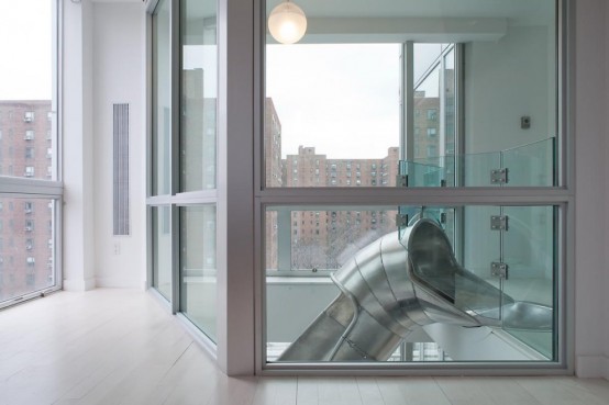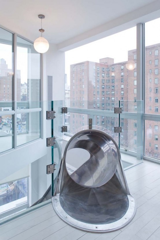 Il y a une balançoire dans le salon chez mes parents, mais un toboggan… ça doit être super !