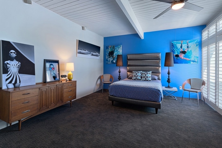 Chambre avec mur bleu