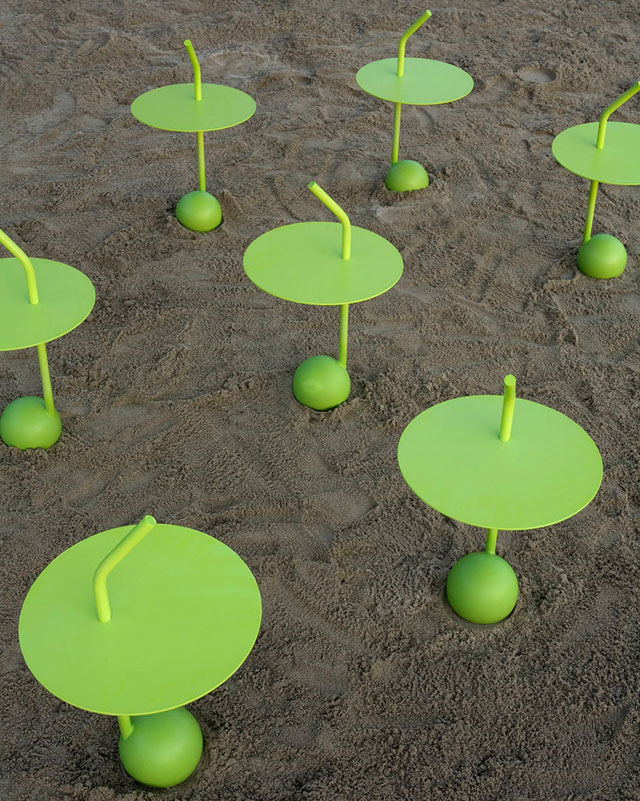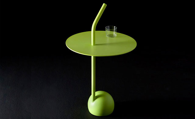 Cette table de jardin design baptisée Peanut a été crée par Miki Astori pour Driade… Son originalité réside surtout dans son piétement, un tube simple et fin lesté d’une boule tout en bas afin de la maintenir en équilibre.